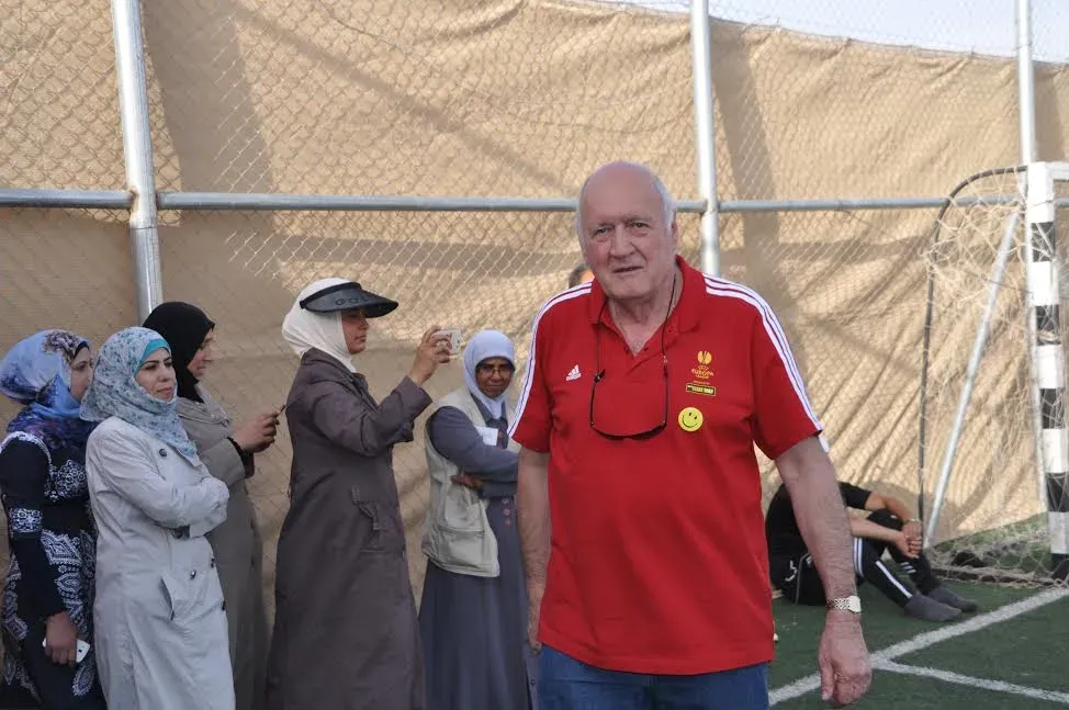 Mais le lien entre Michel Vautrot et le Moyen-Orient ne s’arrête pas à la pelouse. Après sa carrière internationale, alors que beaucoup se seraient retirés dans le confort d’une vie tranquille, il accepte une mission inattendue : se rendre au camp de Zaatari, en Jordanie, l’un des plus grands camps de réfugiés syriens au monde. Guidé par la fondation UEFA For Children et soutenu par le prince Ali ben Al Hussein, il se lance dans une aventure humaine qui dépasse le cadre du sport. Le camp, aujourd’hui peuplé d’environ 80 000 personnes, dont plus de la moitié sont des enfants, ressemble à une ville née de la nécessité. Les rues portent des noms symboliques comme « Champs-Élysées » ou « rue de la justice », et l’air chaud du désert transporte les rires et les blessures d’une population qui tente de se reconstruire.